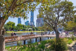 The Greenline Initiative provides a continuous, 4 km journey along the north bank of the Yarra River from Birrarung Marr to the Bolte Bridge.